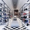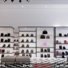 Không gian shop giày được sử dụng tông màu trắng và đen tạo nên hiệu ứng thị giác cực tốt với người nhìn. Hơn thế nữa các sản phẩm giày dép được bày bán trong cửa hàng đều là những mặt hàng cao cấp vì thế lựa chọn tông màu này chính là lựa chọn thích hợp.