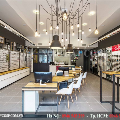 Tập trung chủ yếu vào thiết bị ánh sáng hỗ trợ làm nổi bật lên những mẫu sản phẩm mắt kính, đây là một trong những điểm nhấn đáng chú ý cho mẫu thiết kế shop kính mắt này.