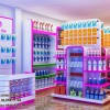 Nội thất của cửa hàng gồm: quầy thu ngân, vách logo, hệ thống tủ sát tường và kệ trưng bày giữa nhà. Toàn bộ nội thất trong mẫu thiết kế shop này làm từ chất liệu gỗ công nghiệp MDF sơn phủ PU cao cấp và sơn bóng kính có đặc tính chống xước, dễ lau chùi.