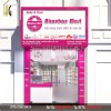 Ngay mặt tiền cửa hàng, bất kì ai đi qua cũng khó lòng rời mắt khỏi và ngoái lại nhìn. Mặt tiền của cửa hàng được sử dụng màu hồng với bảng hiệu có nền trắng nên làm nổi bật rất nhiều logo, tên và những thương hiệu sản phẩm của cửa hàng.