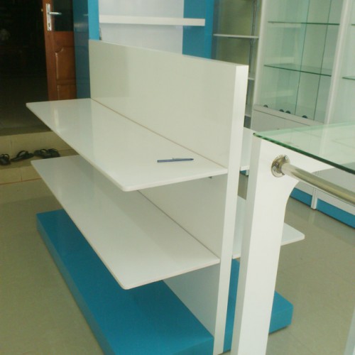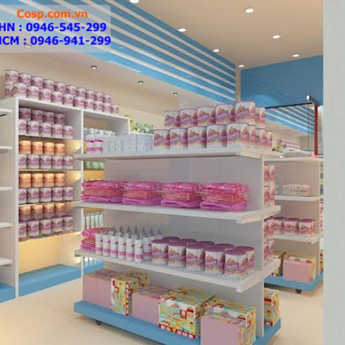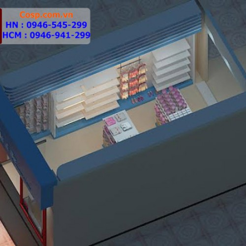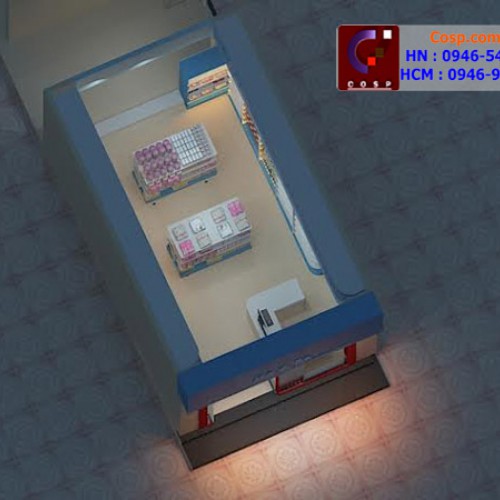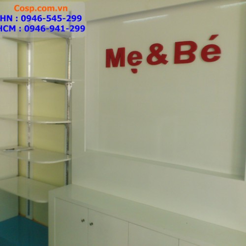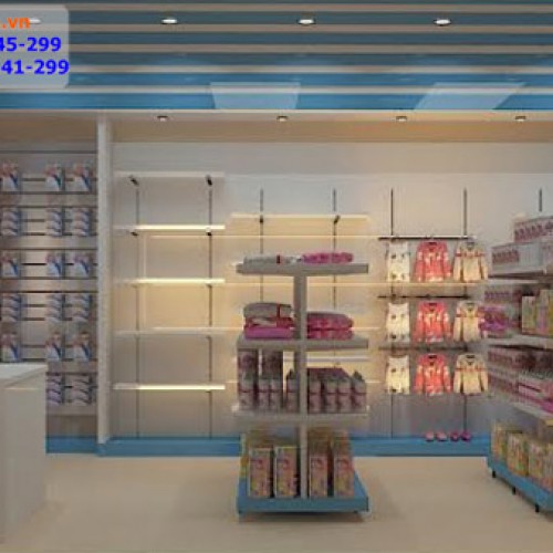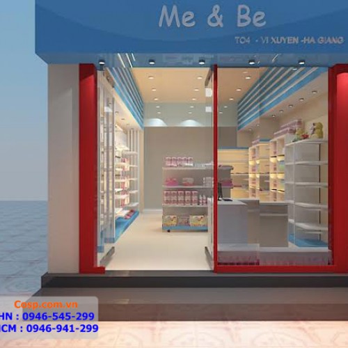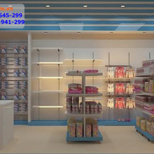 Ý tưởng: Thiết kế shop mẹ và bé với diện tích 24m2...thiết kế thông thoáng nhưng vẫ đủ công năng và thẩm mỹ, phối màu tông xanh và trắng chủ đạo. Thiết kế dùng các vật liệu chính là: gỗ mdf, inox với giá thành hợp lý, thi công tương đối nhanh.