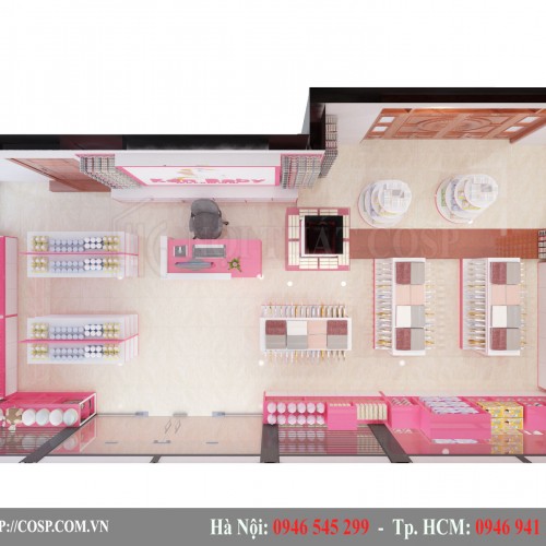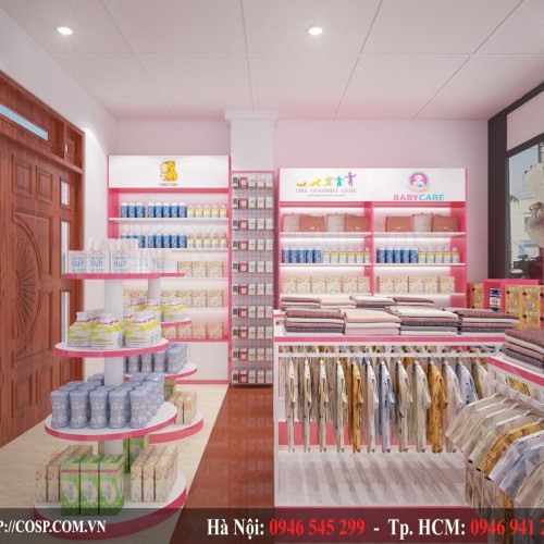 Đây thực sự là một thiết kế shop mẹ và bé hiện đại, đơn giản phải không? Vậy bạn còn chờ gì mà chưa liên hệ ngay với Nội thất Penviet để chúng tôi giúp bạn tạo dựng không gian kinh doanh của riêng mình!