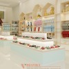 Mở cánh cửa kính ra bạn sẽ được tiếp cận với một không gian trưng bày thời trang trẻ em rất dễ thương. Khác với tông màu đỏ nổi bật phía bên ngoài, màu pastel của các sản phẩm nội thất tạo nên một không gian rất dịu mắt, nhẹ nhàng, tạo cảm giác thoải mái cho người mua sắm. Toàn bộ sản phẩm nội thất shop thời trang này đều được sắp xếp theo một thể thống nhất tạo nên một không gian trưng bày rất khoa học và chuyên nghiệp.