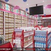 Không gian nội thất bên trong được sử dụng chủ yếu là các kệ giá trưng bày. Chúng tôi đã lắp đặt 2 dãy kệ đứng sát tường cao sát trần ở 2 bên nhằm tạo ra khoảng trống ở giữa được rộng rãi và gọn gàng hơn. Những chiếc kệ này dùng để trưng bày các mặt hàng như sửa, bỉm nên cần độ chắc chắn cao, vì vậy chúng tôi lựa chọn loại tủ bằng gỗ MDF cùng khung sắt sơn tĩnh điện có tính bền cao.