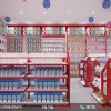 Ngoài ra dãy kệ đứng có kiểu dáng hình ô tô bằng gỗ MDF được lắp đặt thêm để trưng bày các sản phẩm đồ dùng dành cho trẻ khác. Những chiếc kệ này được đặt lùi về phía sau, nhường chỗ cho không gian trước nó 1 khoảng trống vừa đủ để bày các mẫu ghế ăn, xe đẩy hay nôi dành cho bé.