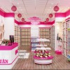 Sự thống nhất về màu sắc nội - ngoại thất làm toát lên tinh thần của mẫu thiết kế shop mẹ và bé, thể hiện sự chuyên nghiệp của thương hiệu.
