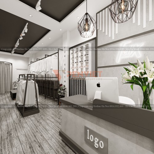 Đối với các thiết kế shop thời trang công sở, điều bạn cần phải chú trọng đến là tạo được một không gian thanh lịch, nhã nhặn. Do đó, kiến trúc sư của chúng tôi đã sử dụng tông màu đen trắng kết hợp để thiết kế cho shop đồ này.