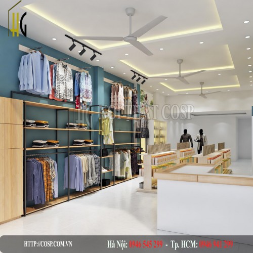 Trên đây là những nét nổi bật của dự án thiết kế cửa hàng thời trang nam nữ của anh Hồng, TP. Hồ Chí Minh. Những dự án khác đến từ công ty nội thất COSP, chuyên thiết kế thi công shop , các bạn có thể xem thêm tại những đường link dưới đây.