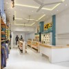 Giá đơn này được kê sát vào tường để tiết kiệm tối đa diện tích cho không gian shop tạo một thiết kế cửa hàng rộng rãi, thông thoáng. Cùng với đó là bục đứng trưng bày và quầy thanh toán cũng được làm từ chất liệu gỗ với tone màu vàng sáng và trắng rất trang nhã và thanh lịch.