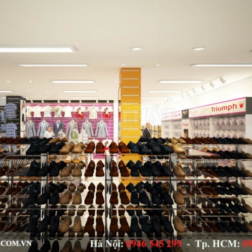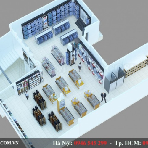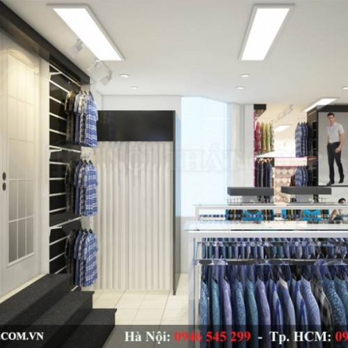 Hiểu được điều này, đội ngũ KTS của chúng tôi - Hoàng Gia Interior cùng với kinh nghiệm hơn 1 năm trong nghề đã sử dụng phong cách hiện đại cho mẫu thiết kế shop thời trang của anh Sơn. Trong mẫu thiet ke shop thoi trang này, chúng tôi phân vùng không gian shop ra thành các khu vực như khu vực trưng bày giày dép, quần áo nam, quần áo nữ... mang đến sự khoa học và bắt mắt. Đồng thời, việc phân chia như vậy giúp không gian shop thời trang trở nên chuyên nghiệp hơn, thuận tiện cho khách hàng lựa chọn sản phẩm.