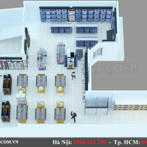 Không gian trở nên liền mạch mang lại cảm giác vô cùng thoải mái và gần gũi với khách hàng, tạo cảm tình trong lòng khách hàng. Hơn nữa, với các không gian trưng bày sản phẩm khác nhau, chúng tôi sử dụng một loại phối màu đặc trưng, phù hợp với không gian và tạo sự nổi bật và ngăn nắp, gọn gàng đầy khoa học. Hệ thống tủ kệ trưng bày với thiết kế tủ sát trường, tủ trưng bày giữa sàn và giá treo sản phẩm mang đến sự đa dạng và phong phú cho shop.