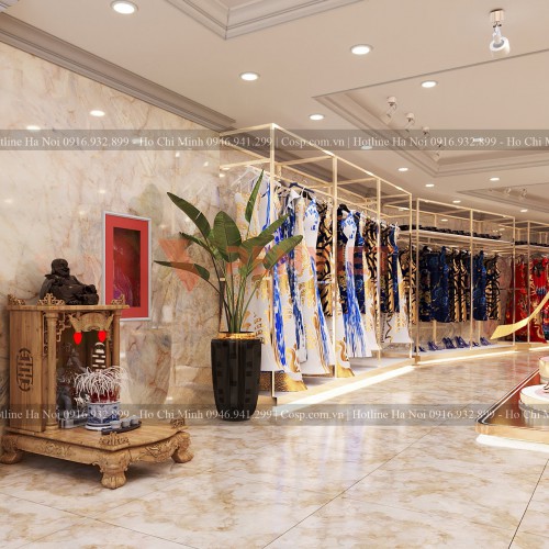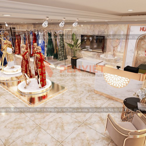 Thiết kế khu vực lễ tân và tiếp đãi khách hàng của shop áo dài Hương Queen
