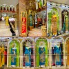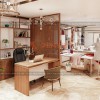 Góc trong cùng có bố trí 1 tủ trưng bày bằng khung bằng gỗ MDF lõi xanh cốt Thái chống ẩm phủ Melamine. Tủ có các đợt bằng gỗ MDF lõi xanh cốt Thái chống ẩm phủ Melamine. Ốp viền Inox mạ vàng khung và các đợt mặt bên ngoài. Tủ sử dụng đèn downlight và đèn Led thanh dưới mỗi đợt chiếu hắt từ trong ra.