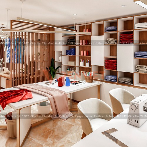 Thiết kế nội thất khu vực dành cho may và thiết kế quần áo ở tầng 2