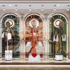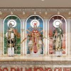 Phần khung trên được làm từ inox mạ vàng, gồm 6 thanh dọc. Bao quanh là kính cường lực siêu trong uốn cong kết hợp với nắp đậy bằng gỗ MDF sơn nhũ vàng, phủ ngoài 1 lớp PU ở phía trên tạo thành 1 khối hộp khép kín bao bọc Mannequin. Bộ nguồn cho đèn Led. Nẹp nhôm mạ vàng kết nối dây điện vào trong.