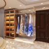 Phòng thay đồ ở tầng hai được thiết kế khá đơn giản và nhỏ hơn tầng 1. Bao gồm thanh treo rèm bằng Inox mạ vàng, rèm vải và gương soi ở bên trong.
