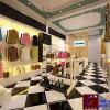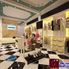 Nền gạch đen - trắng đối lập, sử dụng hình khối sắc nét, tạo cá tính riêng của cửa hàng. Ánh đèn màu vàng phản chiếu, mang tới cảm giác ấm áp, sang trọng cho một thiết kế shop quần áo nữ thế này.