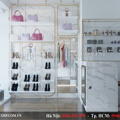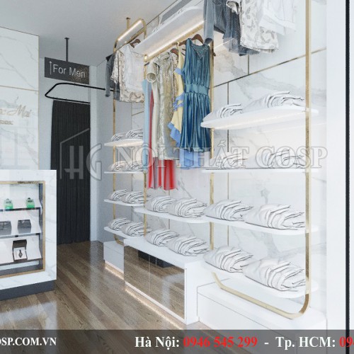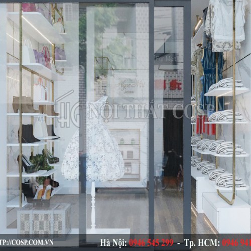 Để làm được những điều đó, KTS đã vận dụng sức sáng tạo của mình cùng với niềm đam mê nghề nghiệp với mong muốn làm hài lòng những khách hàng khó tính nhất. Cùng Nội thất Cosp xem thiết kế shop thời trang Ngọc Mai của chị Mai thông qua những hình ảnh 3D dưới đây nhé.