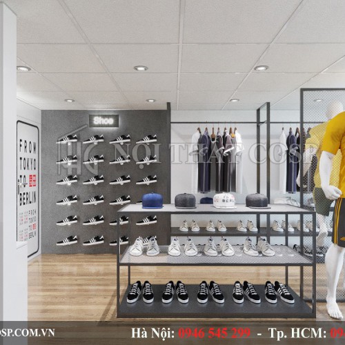 Qua nghiên cứu mặt bằng, kiến trúc sư của chúng tôi đã chia thiết kế shop thành hai gian chính với hai loại mặt hàng dành cho nam và nữ bày bán riêng biệt. Với cách phân bố khu vực rất khoa học như vậy, khách hàng sẽ tiết kiệm được thời gian tìm kiếm và lựa chọn sản phẩm.