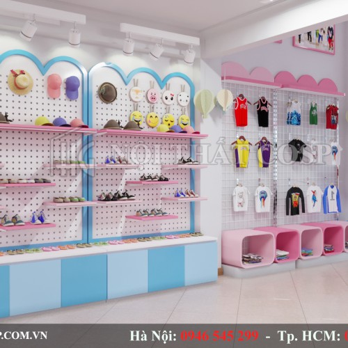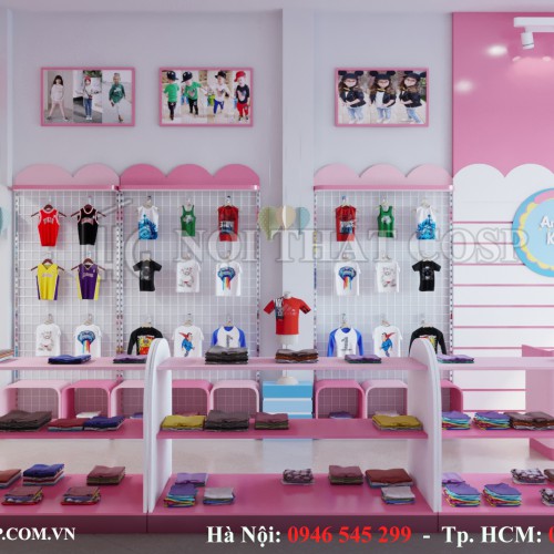 Anh Chiến tìm đến Nội thất COSP với mong muốn có cho mình một không gian shop thời trang dễ thương, gần gũi với các đối tượng khách hàng nhỏ tuổi. Và với kinh nghiệm của mình, chúng tôi hiểu rằng đối với một shop thời trang cho bé thì cần sử dụng những chất liệu mang tính thẩm mĩ cao để hấp dẫn các bạn nhỏ.
