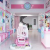 Kiến trúc sư đã sử dụng 3 màu sắc hồng, trắng và xanh dương để mang lại một không gian nội thất shop vô cùng dễ thương. Cách sử dụng khéo léo đã góp phần mang lại cảm giác dịu nhẹ nhưng không kém phần thu hút.
