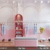 Thiết kế cửa hàng thời trang Lady’s House sử dụng mẫu quầy thu ngân bằng gỗ MDF phun sơn hồng đơn giản nhưng được phối màu và các đường kẻ sọc trắng tinh tế, mang đến cảm nhận về sự hiện đại, sang chảnh cho không gian. Với chất liệu gỗ MDF chống ẩm, có độ bền cao, chống cong vênh, mối mọt và có tính thẩm mỹ cao nên được các KTS lựa chọn rất nhiều.