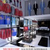 Với phong cách thiết kế shop quần áo nam này, cửa hàng của bạn sẽ mang nét trẻ trung, hiện đại, năng động và cá tính. Bạn có thể sử dụng các gam màu phá cách một chút như sắt sơn tĩnh điện, mdf phun sơn, đèn led... hay chỉ sử dụng một màu trắng duy nhất cho thiết kế cửa hàng của mình như mẫu thiết kế ở hình bên dưới sẽ khiến không gian shop thêm phần ấn tượng.