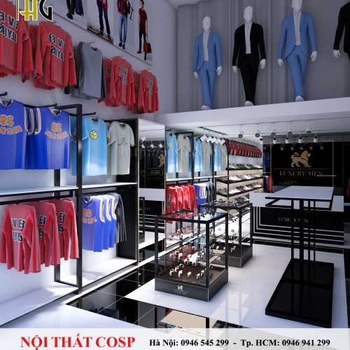 Với tone màu trắng đen đã mang lại cho những bộ vest trưng bày nơi đây sự lịch lãm, tự tin, mạnh mẽ và đôi chút nét huyền bí. Những chi tiết trong thiết kế shop quần áo nam tuy rất đơn giản, mộc mạc nhưng khi chúng kết hợp lại với nhau tạo ra một thiết kế shop thời trang nam đầy cá tính, độc đáo và rất ấn tượng. Khách hàng bước vào sẽ cảm nhận phong cách phóng khoáng từ không gian lớn, rộng rãi, một chút bí ẩn, kỳ bí từ những gam màu tối khích thích bản năng khám phá của con người.