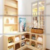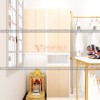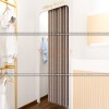 Phía sau những chiếc kệ này (sát tường) là tủ đồ gấp cũng bằng gỗ MDF cốt xanh chống ẩm phủ Melamine, mỗi ngăn tủ được chia rõ ràng và có bản lề giảm chấn.
