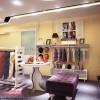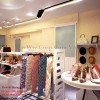 Những chiếc giá treo loại thanh ngang đơn giản được lắp đặt sát tường để tối ưu cho không gian trưng bày sản phẩm. Một chiếc giá treo nhỏ cũng được đặt giữa lối đi để gia tăng thêm khu vực lựa chọn đồ cho khách hàng. Bên cạnh đó là những chiếc kệ để giày rất ấn tượng. Bạn cũng có thể tận dụng bề mặt phía trên kệ để trưng bày thêm các mẫu túi xách cũng rất hợp lý.