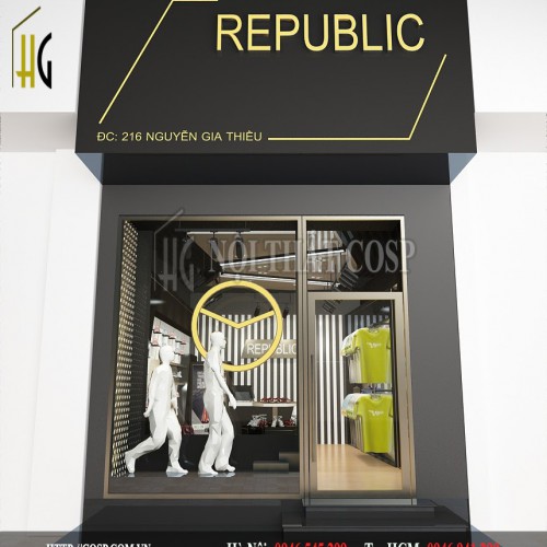Dưới đây là phong cách hiện đại, cá tính được thể hiện trong dự án thiết kế shop thời trang Repulic - anh Quyết - Bắc Ninh, mời các bạn dõi theo bài viết cùng Cosp.com.vn!