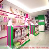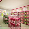 Hai chiếc kệ gỗ với hình những cây bút chì màu dễ thương được đặt chính giữa lối đi để tạo điểm nhấn độc đáo trong thiết kế shop thời trang dành cho bé này. Mặc dù những chiếc kệ này được đặt ở giữa lối đi lại nhưng vẫn đảm bảo được khoảng cách cho khách hàng dễ dàng di chuyển và mua sắm. Mặc dù khá nhỏ nhưng chiếc kệ này bày bán được rất nhiều sản phẩm, các mẫu treo được gắn trên giá, tận dụng kệ gỗ mặt trên và dưới để bày bán các mẫu quần áo gập.