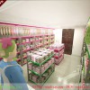 Thoạt nhìn có thể thấy mẫu thiết kế shop thời trang trẻ em Kid Mode được sử dụng màu sắc khá nổi bật và bắt mắt, giúp thu hút ánh nhìn của người qua đường rất tốt. Màu hồng, xanh lá cây và trắng được kết hợp rất hài hòa, bố trí đan xen nhau tạo nên một không gian cửa hàng thời trang dành cho bé rất năng động, hoạt bát và cũng đảm bảo được sự nhí nhảnh, tinh nghịch của trẻ con.