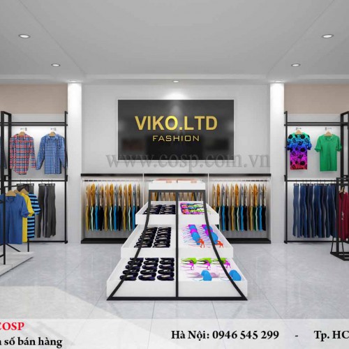 Vách logo hiện đại, sử dụng mika phát sáng thể hiện thương hiệu thời trang Viko sang trọng, chuyên nghiệp. Với nhiều năm kinh nghiệp trong lĩnh vực thiết kế nội thất shop, Nội Thất COSP đã mang tới mẫu shop thời trang tốt nhất, đảm bảo đúng chất lượng cũng như phù hợp với nhu cầu và khả năng của khách hàng.