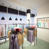 Tầng 2 được thiết kế với những chiếc đèn treo màu đen tạo điểm độc đáo, nổi bật cho nội thất cửa hàng. Ở bên trong có thể nhìn ra khung cảnh bên ngoài thông qua tấm kính chắn, vừa giúp tăng không gian, vừa tạo nên một khung nhìn đẹp trở thành điểm nhấn cho thiết kế. Vách ngăn bằng kính giúp trao đổi ánh sáng với bên ngoài giúp không gian thiết kế shop bán quần áo luôn được tươi mới, rạng rỡ và tự nhiên do nhận được nhiều ánh sáng mặt trời.