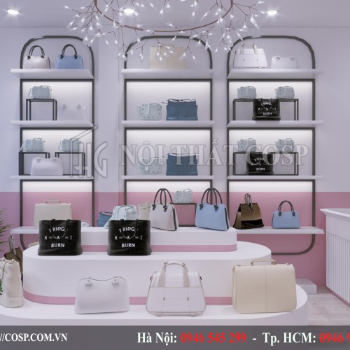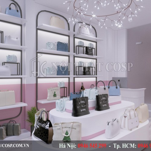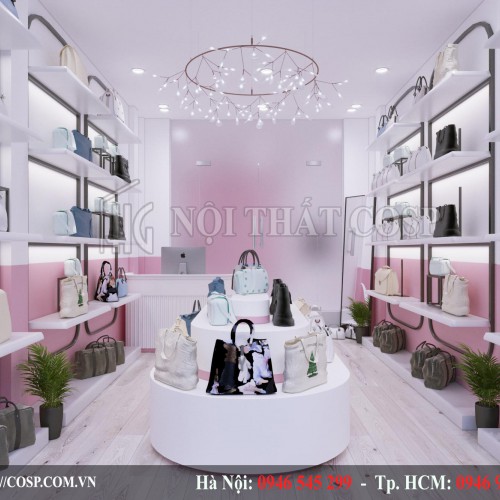 Đến với công ty nội thất COSP, chị Hạnh mong muốn có cho mình một không gian shop phụ kiện thời trang, túi xách mang phong cách trẻ trung và hiện đại. Chúng tôi sử dụng màu sắc chủ đạo là hồng và trắng mang lại nét đáng yêu và phù hợp với không gian dành cho chị em.