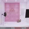 Phía bên trong được dùng để làm không gian livestream, studio nhỏ của shop. Cũng với tone màu chủ đạo là hồng và trắng tạo nên một thiết kế shop thời trang đẹp với cách bày trí rộng rãi, thoáng để phát huy hết công năng của không gian.
