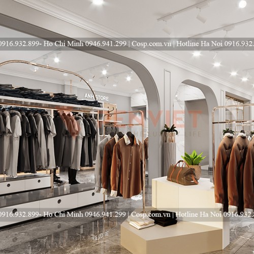 Trên đây là những hình ảnh trong dự án thiết kế showroom thời trang Dragon. Hy vọng sau khi xem xong những hình ảnh này các bạn sẽ có những ý tưởng để thiết kế cho shop thời trang của mình. Nếu chưa có ý tưởng thiết kế cần giúp đỡ hoặc đang tìm một đơn vị thi công shop chuyên nghiệp thì hãy liên hệ với Nội thất Cosp nhé.