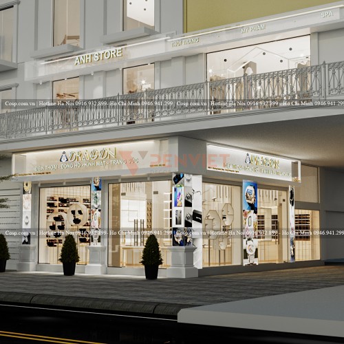 Thiết kế tổ hợp showroom thời trang kính mắt đồng hồ Dragon