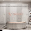 Ngoài ra trong phòng thử đồ này còn được lắp đặt thêm các phòng thử đồ và nhà vệ sinh. Cửa của những căn phòng này được làm bằng gỗ MDF cốt Thái Lan chống ẩm phủ veneer dày 17mm sơn inchem trắng. Khuôn và nẹp phào cửa được làm từ gỗ tự nhiên sơn trắng cùng phào chỉ gỗ quanh tủ 2 mặt. Khóa cửa thì được mạ vàng, là loại khóa Huy Hoàng cao cấp.