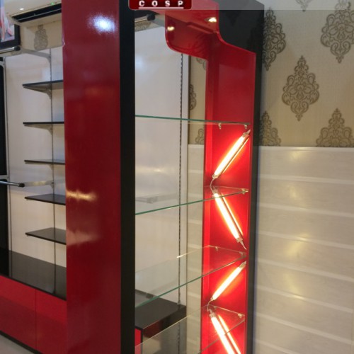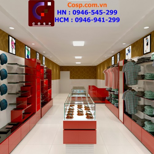 Nội thất được lựa chọn trong thiết kế cửa hàng thời trang này được làm từ chất liệu gỗ công nghiệp Acrylic với độ bóng sáng rất đẹp mắt, tạo nên một không gian trưng bày sản phẩm sang trọng và đẳng cấp.