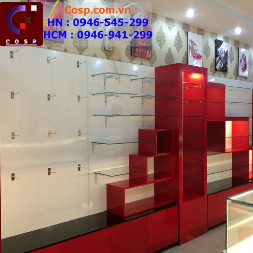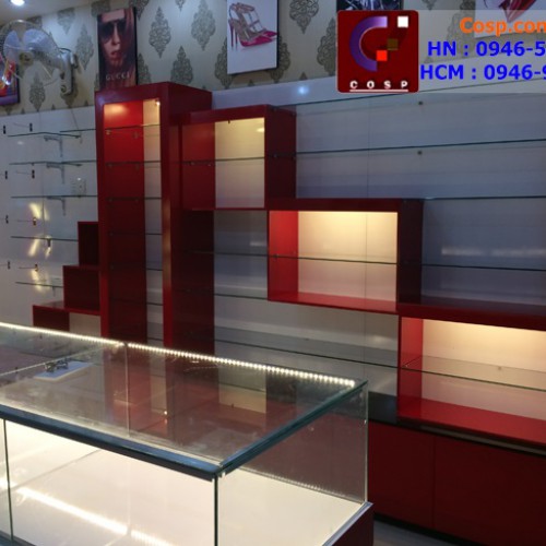Các tủ, kệ trưng bày bóng bảy, đẹp mắt và hiện đại