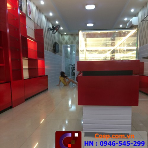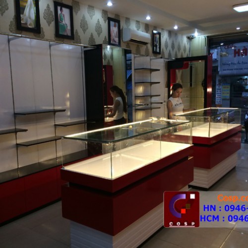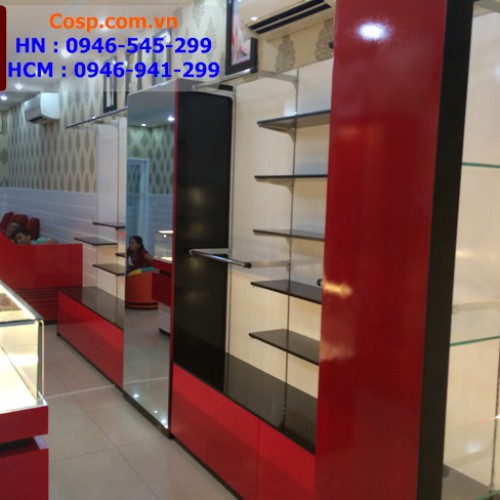 Các tủ, kệ trưng bày sản phẩm được thiết kế đẹp mắt, bóng bảy, hiện đại