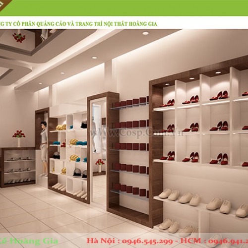 Khu vực trưng bày các sản phẩm giày dép, mũ nón được bố trí riêng một phòng ở trên tầng. Các hệ tủ trưng bày được bố trí rất khoa học với nhiều ngăn tầng khác nhau giúp chủ shop bày bán được rất nhiều sản phẩm.