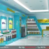 Không gian chính là khu vực trưng bày sản phẩm được thiết kế với hai màu sắc chính đó là xanh dương và trắng giúp không gian trở nên đồng điệu và thống nhất hơn về màu sắc cũng như phong cách.
