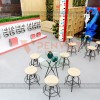 Bên còn lại của căn phòng được đặt 2 bộ bàn tròn chân sắt để tiếp khách. Đằng sau là bục gỗ được kê cao để đặt những máy tiện, máy đục. Ngoài ra, chiếc kệ gỗ công nghiệp 3 tầng sát tường được đặt thêm. Trên trán của chiếc kệ này được dán chữ mica từ các thương hiệu có tiếng trong ngành thiết bị hàn cắt.