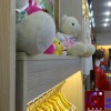 Sản phẩm tại tầng 1 của siêu thị Gấu Vầng chủ yếu là đồ chơi, gấu bông, quần áo, các phụ kiện giày dép... trẻ em, với tông màu chủ đạo là xanh kết hợp hồng - trắng - xanh.