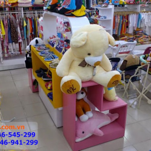 Sản phẩm chủ yếu của tầng 2 siêu thị Gấu Vàng là thời trang cao cấp : thời trang trẻ em, thời trang bà bầu, kèm các phụ kiện liên quan. Tông màu chủ đạo dùng gỗ melamin an cường vân tự nhiên cao cấp.