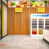 Thiết kế siêu thị mini Anna’s Market sử dụng lam nhựa vân gỗ màu nâu trầm ốp tường tạo nên một không gian thân thiện, gần gũi cho khách hàng.