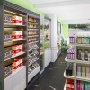 Quầy thu ngân bằng gỗ MDF chống ẩm cốt Thái phủ melamine với thiết kế bắt mắt được chúng tôi bố trí ngay gần cửa chính, không chỉ khiến khách hàng tới đây mua sắm luôn được chào đón và hỗ trợ nhiệt tình mà còn giúp cho nhân viên dễ dàng bao quát toàn bộ tiệm.